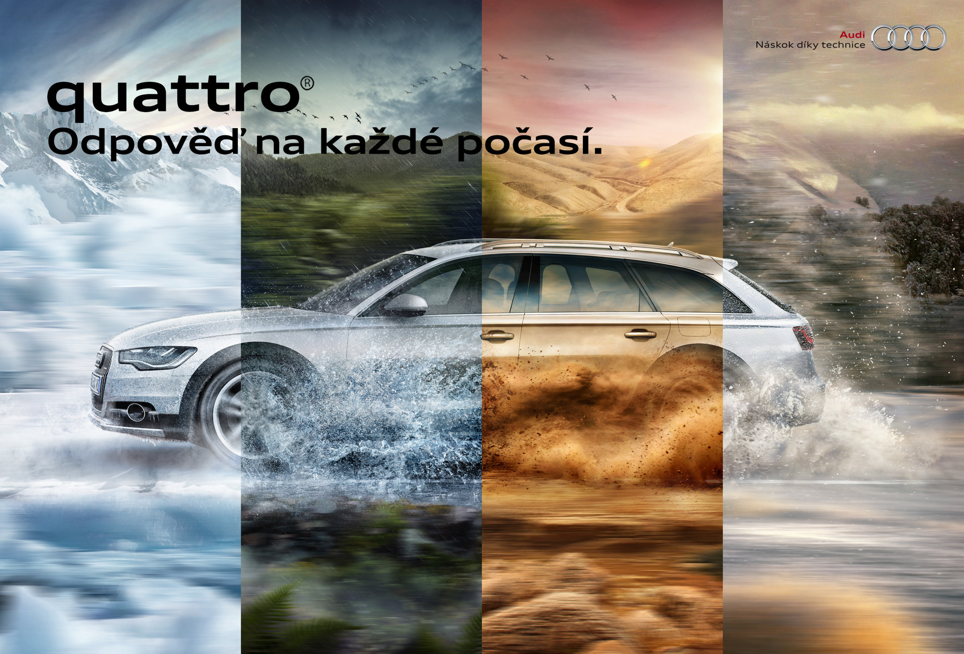In December we were approached by Audi to recreate 4 climates in 1 week's time. We utilized digital illustration and over 90 stock photos to cook the result.